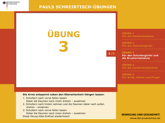 Acht Stunden auf dem Bürostuhl ohne jegliche zusätzliche Bewegung gehört mittlerweile zum Alltag für viele Menschen. Die mangelnde Bewegung ist mitverantwortlich für Volkskrankheiten wie Rückenschmerz, Übergewicht und Mausarm. Der Bildschirmschoner Pauls Schreibtisch-Übungen des Bundesministeriums für Gesundheit will auf witzige Weise diesen Übeln vorbeugen.